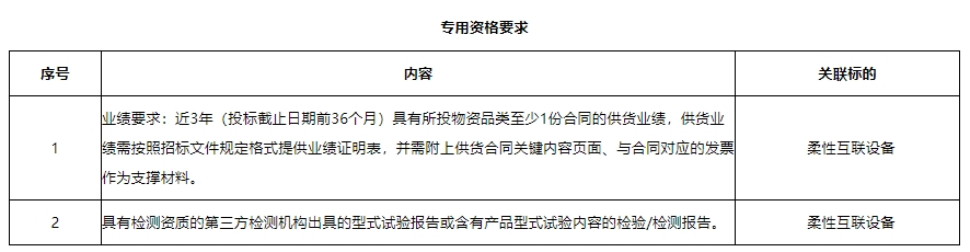 备注:如包内存在不同类别的设备材料,投标人须分别满足包内各类别设备材料的商务资格及技术要求方可视为满足此包的资格要求。