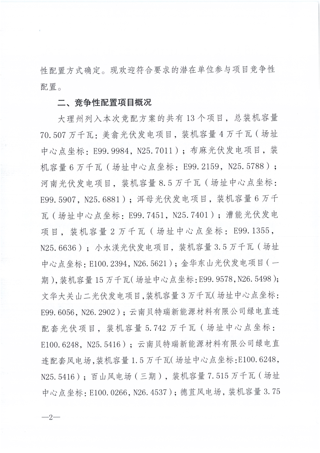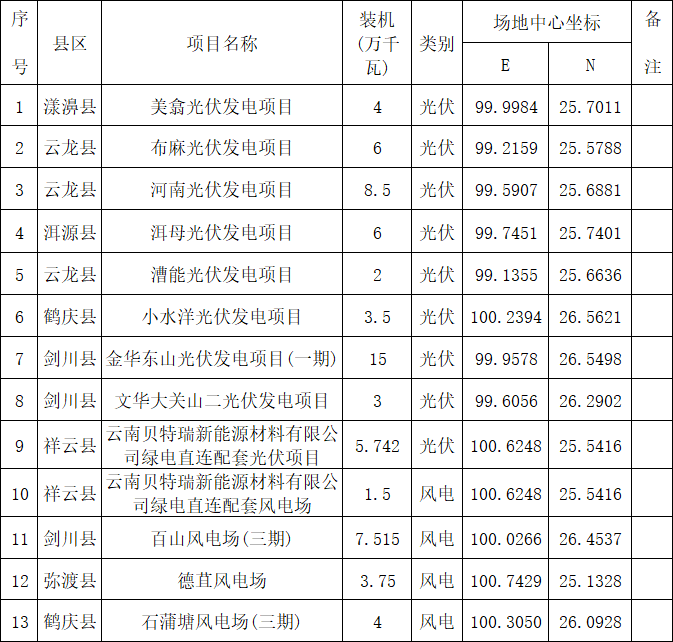 根据公告,大理州列入本次竞配方案的共有13个项目,总装机容量70.507万千瓦。其中,光伏项目9个,容量共计53.742万千瓦;风电项目4个,容量16.765万千瓦。